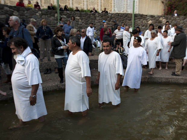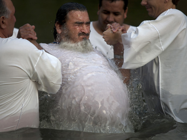 O portal G1 publicou as foto dos sobreviventes da mina no Chile se batizando nas águas do rio Jordão.