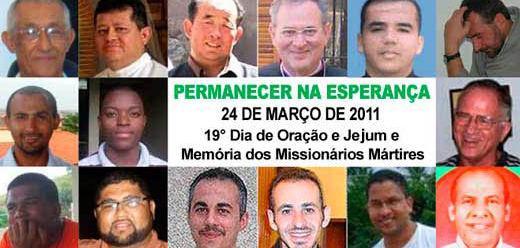 No próximo dia 24, (dia do assassinato de dom Oscar Romero, bispo de El Salvador, 1980) a Juventude Missionária na Itália celebra o 19º Dia de Oração e Jejum em Memória dos Agentes de Pastoral assassinados em 2010 em todo o mundo.