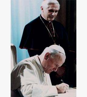 João Paulo II criou uma nova abertura e sensibilidade para os problemas da religião, para a necessidade da dimensão religiosa na vida do homem, e, para o atual Bento XVI, o Papa polonês sobretudo mostrou de novo a importância do Bispo de Roma.