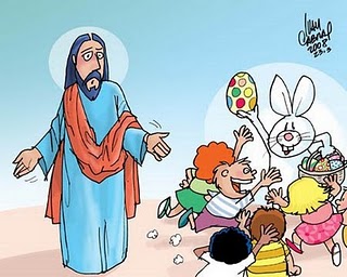 Então? Essa festa que o mundo inteiro celebra é em homenagem ao Cristo Pascal ou ao Coelhinho da Páscoa? Parece óbvio que se homenageia o coelho que põe ovos!