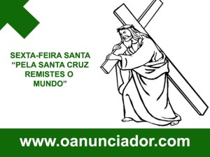 “Eis o lenho da Cruz, onde esteve pregada a salvação do mundo. Ó VINDE ADOREMOS”, e todos ajoelhados uns instantes de cada vez, e então vamos, em procissão, venerar a Cruz pessoalmente, com um genuflexão (ou inclinação profunda) e um beijo (ou tocando-a com a mão e fazendo o sinal da cruz ); enquanto cantamos os louvores ao Cristo na Cruz :