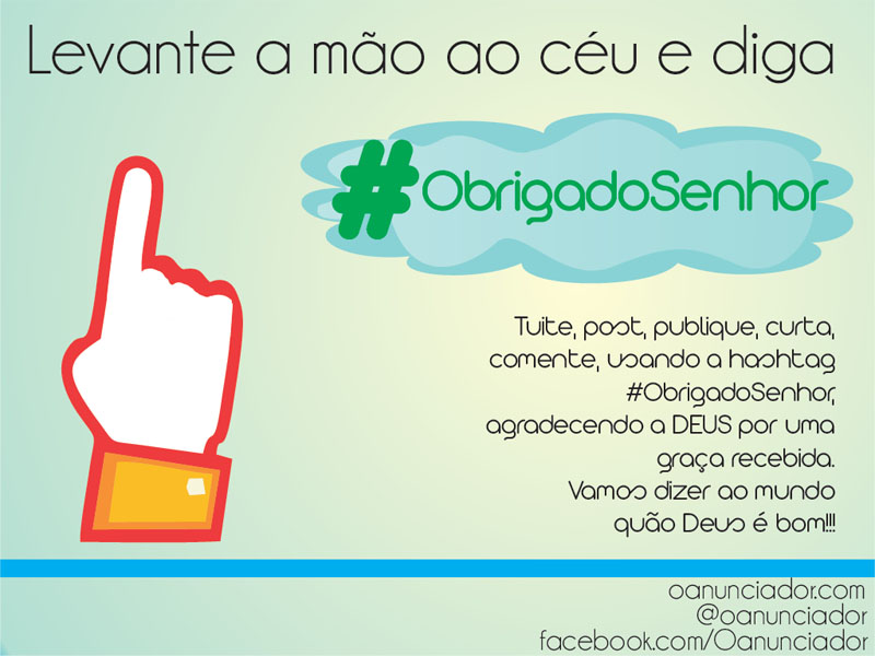 O Anunciador convida você também a agradecer a Deus por uma graça recebida. Use o twitter, o facebook, o G+ e tantos outras redes sociais para agradecer a Deus. Coloque a hashtag #ObrigadoSenhor e diga a sua graça. Faça seu agradecimento a Deus Pai.