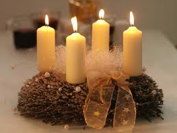 As 4 velas: uma vela para cada domingo que antecede ao dia 25 de dezembro. Alguns registros históricos contam que a coroa de advento surgiu em uma instituição que abrigava crianças pobres. Inicialmente ela continha entre 22 a 28 velas, uma para cada dia do tempo de advento. Devido aos custos diminuiu-se o número de velas. As velas da coroa são acesas (a cada domingo mais uma), para iluminar a Vigília do Advento, a preparação para vinda da luz ao mundo. Simboliza que Jesus Cristo é a luz do mundo. Comunica a alegria da vida que procede de Deus, aquela que vai além dos limites que a vida no mundo impõe.