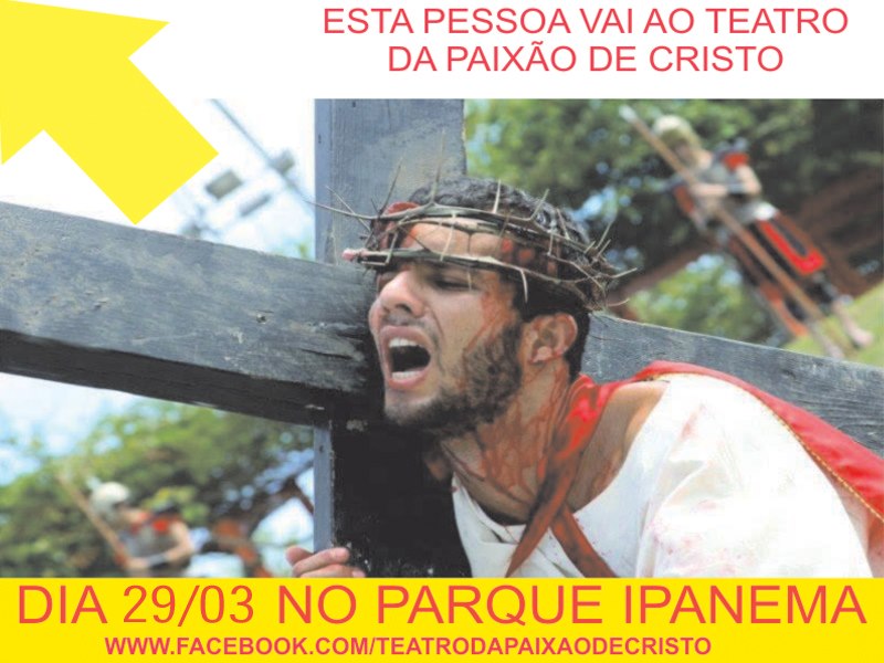 Pastoral da Juventude de Ipatinga-MG promove a 18º edição do Teatro da Paixão de Cristo. O evento será realizado na sexta-feira santa, 29/03, às 8h. O tradicional teatro começa no Trevo do bairro Jardim Panorama, com a Caminhada da Misericórdia. A encenação ocorre em seguida, no Parque Ipanema. É esperado um público de 30 mil pessoas para esse ano.