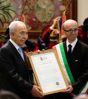 O Presidente israelense Shimon Peres recebeu em Assis, na Itália, o título de “Cidadão honorário para a paz” na manhã desta quarta-feira, 1º. A cerimônia realizou-se no Salão papal do Sacro Convento.