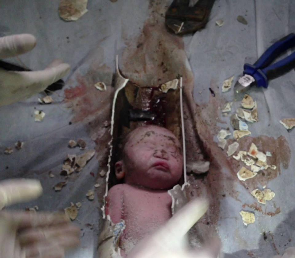 O bebê de 2,3 kg – identificado apenas como 59, o número de sua incubadora no hospital – permaneceu preso de duas a três horas na tubulação e sofreu alguns cortes no rosto, pernas e braços. Após encontrarem a criança, os serviços de resgate demoraram mais de uma hora para cortar o trecho da tubulação de 10 cm de diâmetro, utilizando serras e alicates para retirar o recém-nascido.