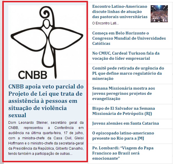 Defendido o Veto Total por vários pró-vidas no país e fora da PL 3/2013, a CNBB – Conferência Nacional do Bispos do Brasil – pede apena o veto parcial da medida. A entidade não ouviu o clamor de muitos de sues fiéis e de manifestantes pró-vida pelo país pedido o veto total da Presidenta. A CNBB apoio o texto e pede veto parcial apenas a essa medida que abre as portas para o aborto no país.